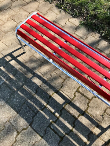 • Wetterfeste Konstruktion: Bei den klassischen Modellen werden feuerverzinkte Rundrohr-Gestelle sowie PVC-Latten eingesetzt. Das ist für den dauerhaften Aussenbereich relevant.