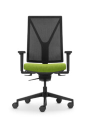 Der Yanos Flex von Girsberger wurde für bewegtes, gesundes Sitzen im Büro entwickelt. Dank Flex-Synchronmechanik mit automatischer Federkrafteinstellung passt sich der Stuhl intuitiv an unterschiedliche Nutzer:innen an und unterstützt eine ergonomische Sitzhaltung über den ganzen Arbeitstag. Der atmungsaktive Netzrücken in Schwarz und der gepolsterte Sitz mit Stoff Event schwarz sorgen für hohen Komfort und eine klare, zeitlose Optik – ideal für moderne Arbeitsplätze.
