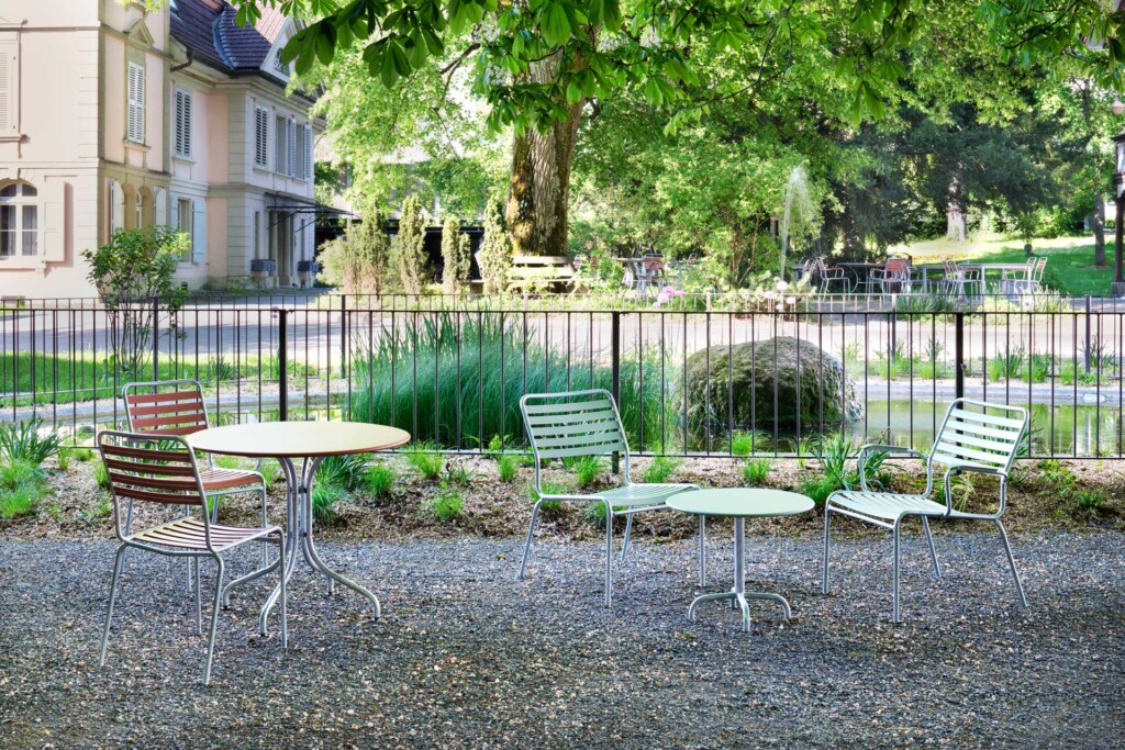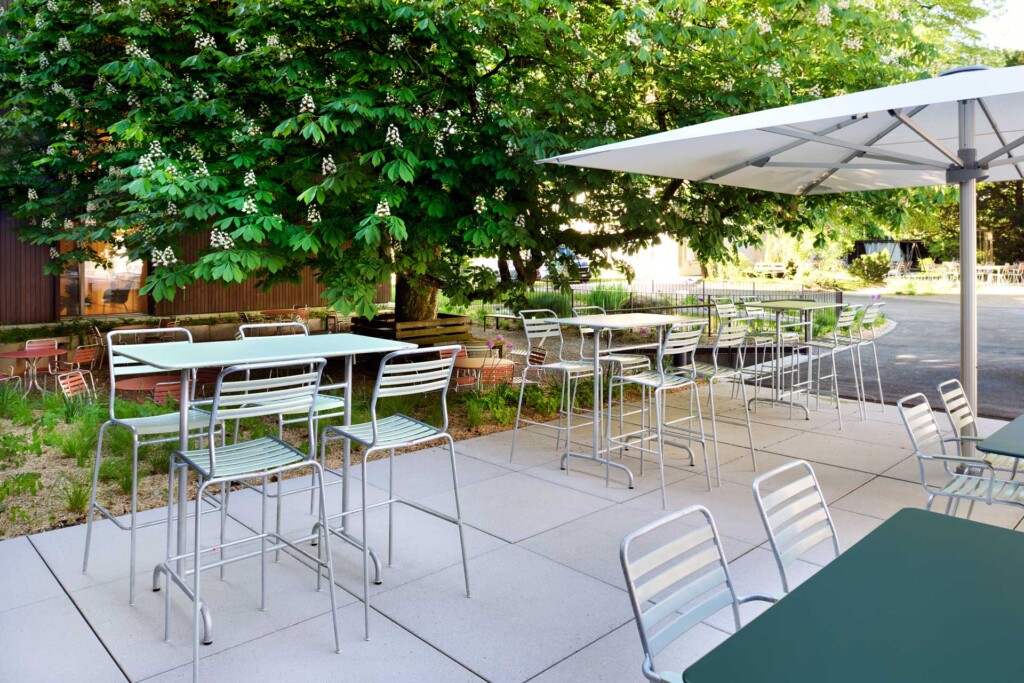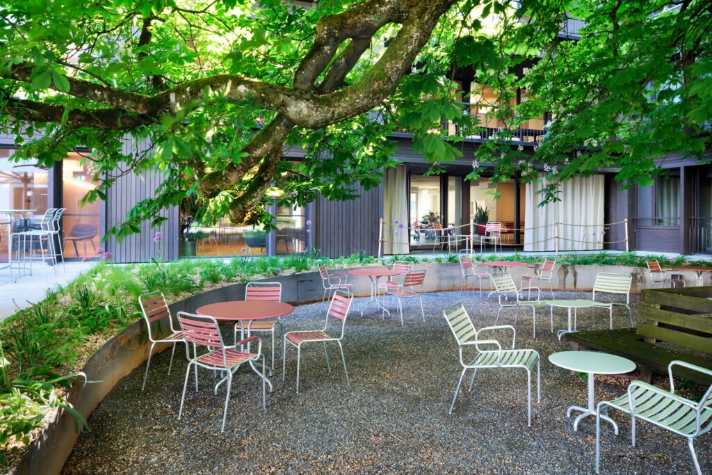 Auch im Aussenbereich durften wir gestalterisch tätig werden: Für die Gartenanlage und die Restaurantterrasse wurden wetterfeste Möbel ausgewählt, die Komfort und Langlebigkeit vereinen. So entstand ein stimmiges Gesamtbild – ein Ort der Begegnung und Erholung, der Innen- und Aussenräume harmonisch miteinander verbindet.