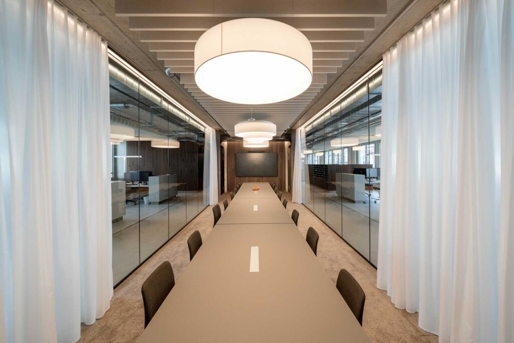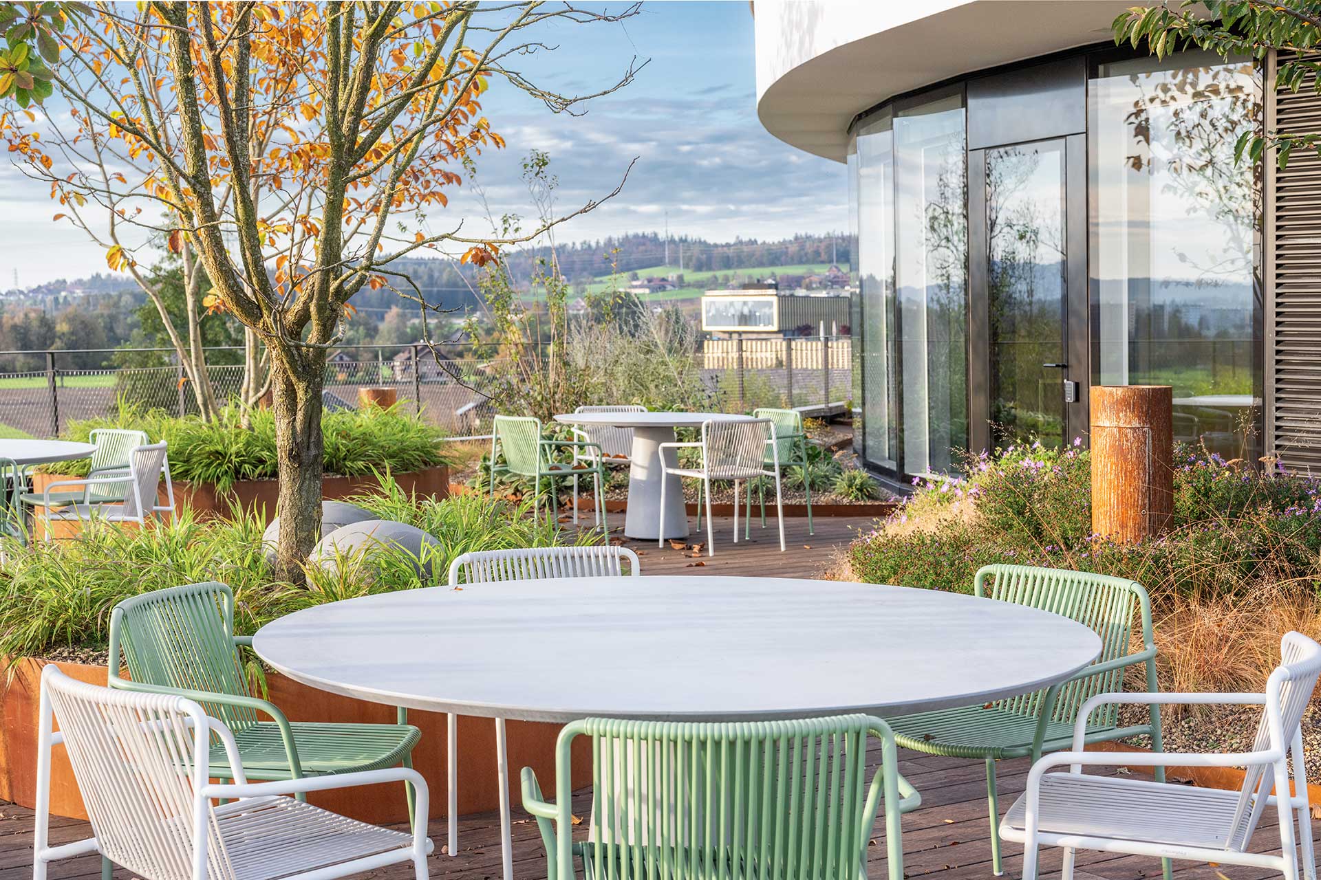 Die Möblierung betraf sämtliche Innen- und Aussenbereiche: Meetingräume, Zonenmobiliar, Cafeterias, Loungebereiche, Aussenbereiche, Büroarbeitsplätze, Sitzungszimmer und Restaurantflächen.
